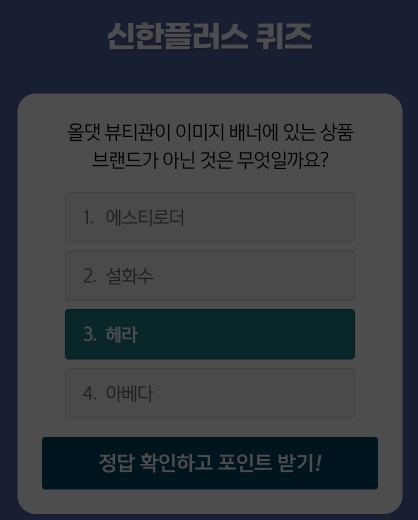 신한위드 퀴즈. 올댓 뷰티관이 이미지 배너에 있는 상품 브랜드가 아닌것은 무엇일까요?