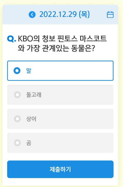 | 12월 28일 신한 쏠야구 쏠퀴즈 오늘의 OX퀴즈 신한플러스 위드(WITH)퀴즈정답 (0) | 2022.12.28 |