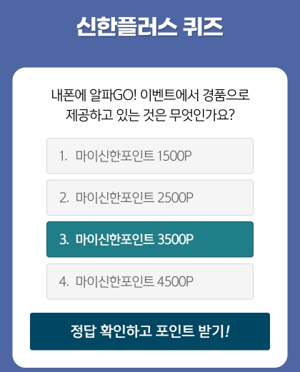 매일 밤 12시에 퀴즈가 출제되고 정답을 맞히면 3~5000P 적립됩니다.