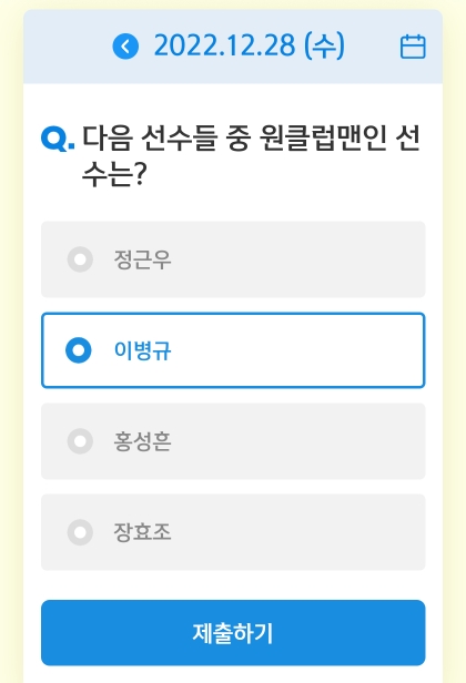 매일 밤 12시에 퀴즈가 출제되고 정답을 맞히면 3~5P 적립됩니다.